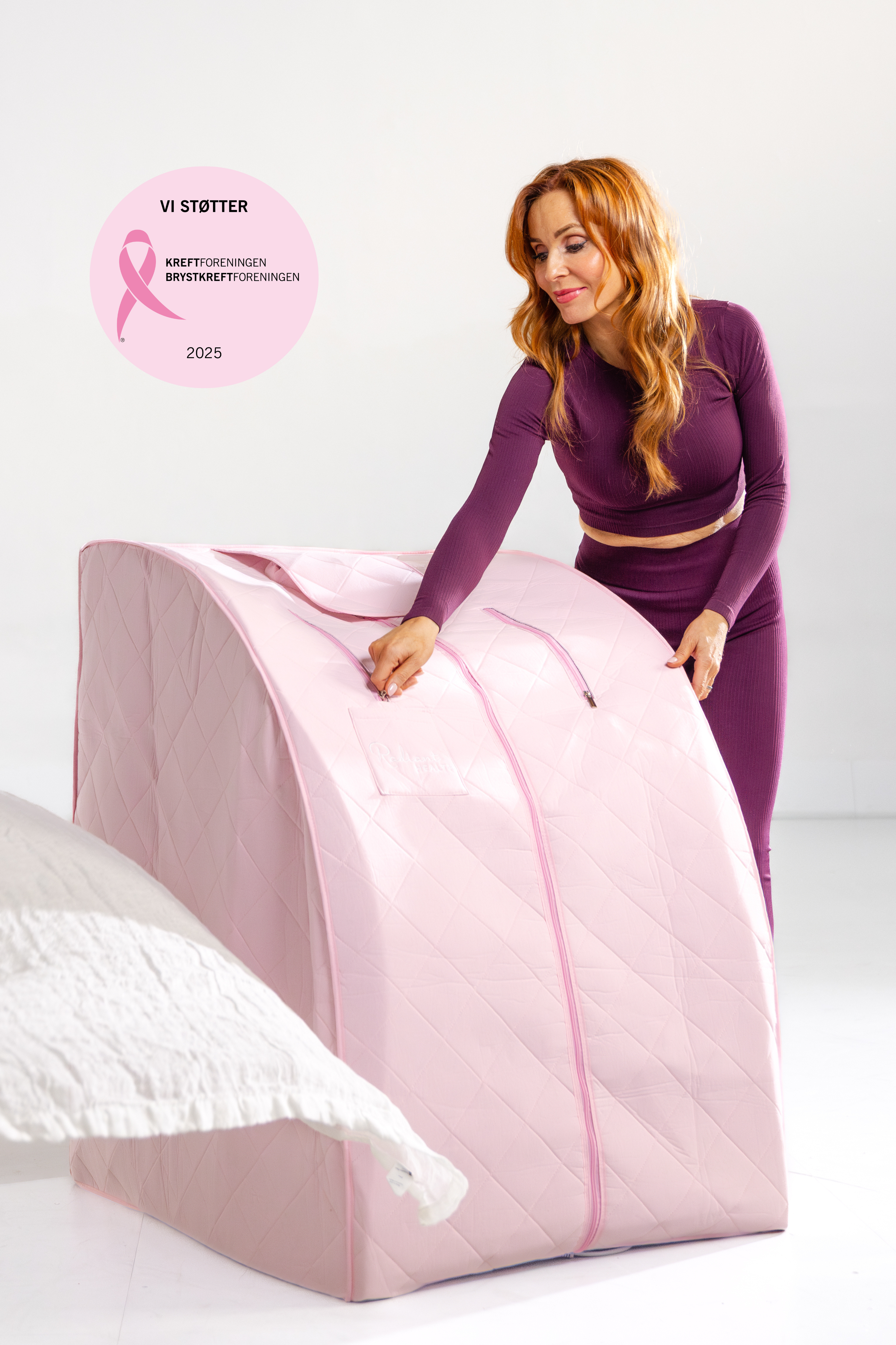 IR SaunaPod Pink Edition er en portabel sittesauna i limited edition – designet i rosa som et symbol på håp og styrke. Den gir deg dyp avspenning, bedre blodsirkulasjon og økt velvære rett hjemme i stua, samtidig som du støtter brystkreftforskningen. Hele 15 % av overskuddet går til Kreftforeningen og Rosa sløyfe-aksjonen.